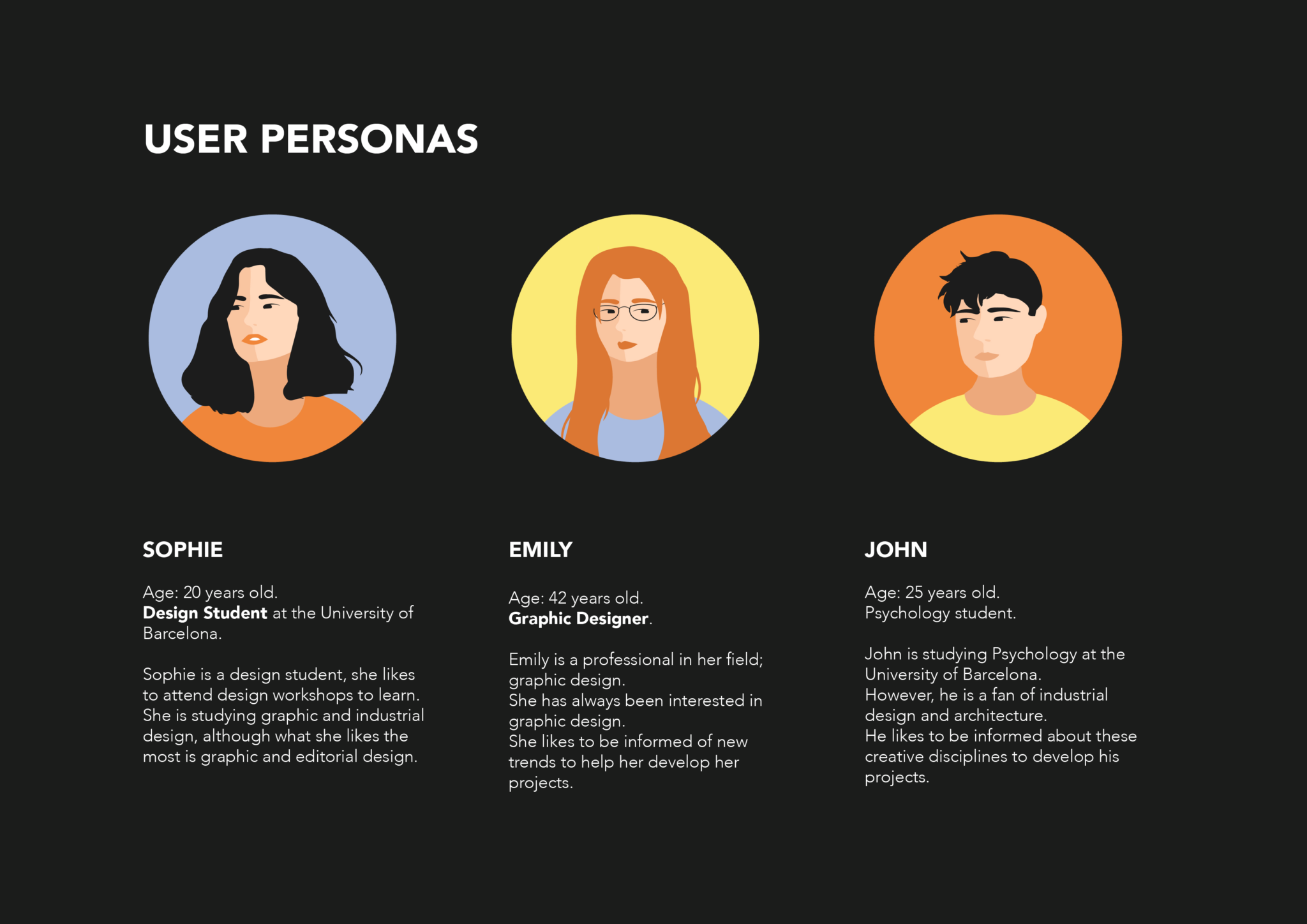 I interviewed several creative candidates — including students, professionals, and people from adjacent disciplines — to learn about their motivations, habits, and frustrations when looking for design-related events and experiences.